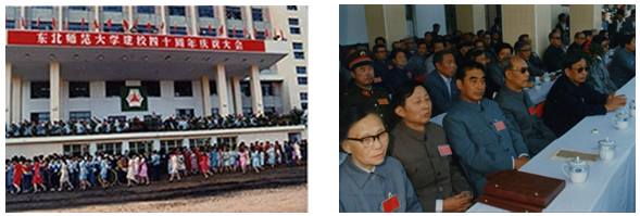 9月10日,我校在运动场隆重举行建校四十周年庆祝大会。国家教委、中共吉林省委、长春市委市政府等领导出席了大会,北京师范大学等兄弟院校的领导,我校老领导何锡麟、张松如、亚马、成仿吾夫人张琳等同志也出席了大会,我校党政领导和全体教职学工、校友万余人参加了庆祝大会,大会由副校长黄启昌主持。